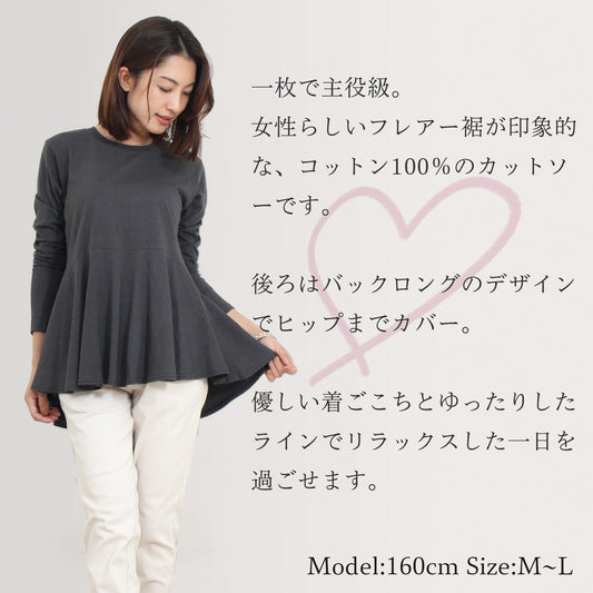 ラウンドネック長袖すそフリルフレアーカットソー 5カラー M~L