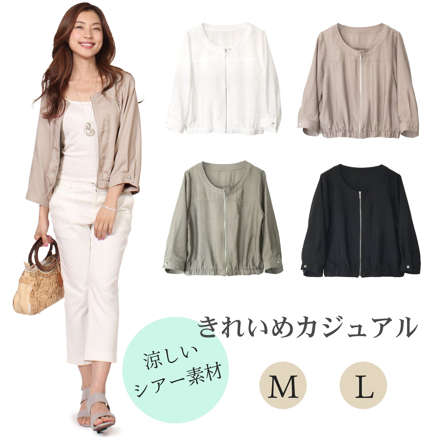 さらりと羽織れる、軽やかシアー素材のフロントジップサマーブルゾン。これからの季節の外出のお供に最適なライトアウター。