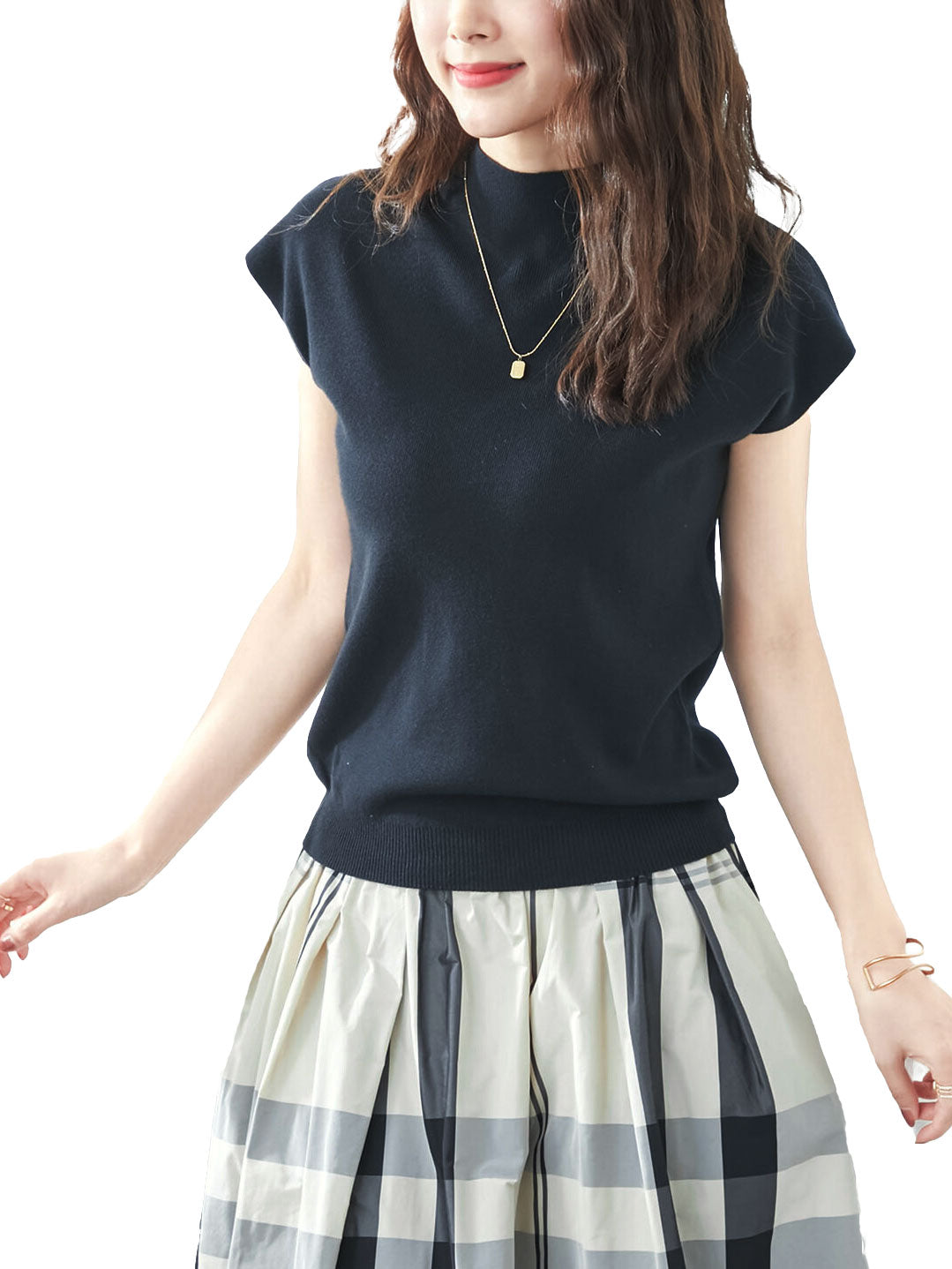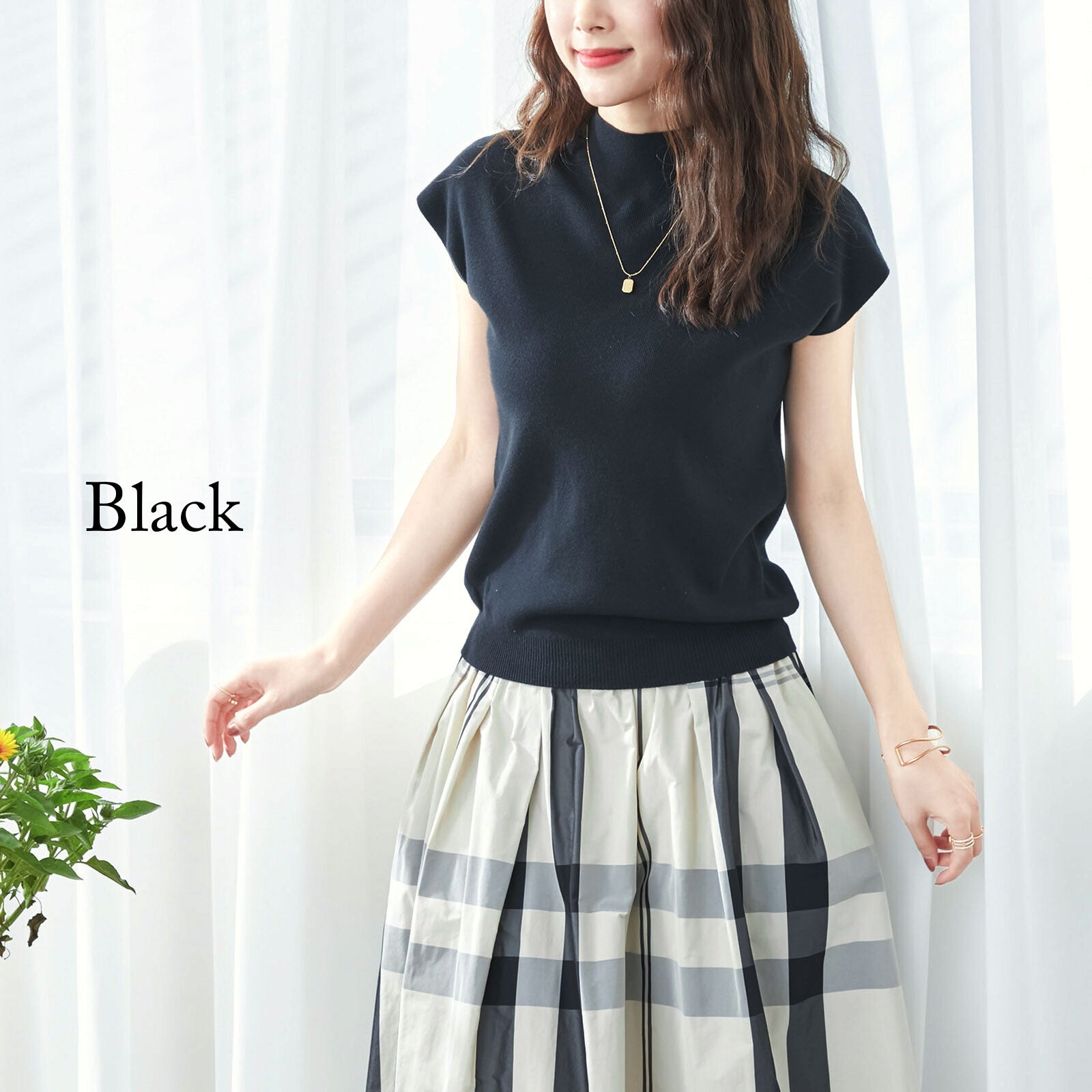女性らしいボトルネックやフレンチスリーブなど、どことなくレトロで上品なデザイン。 とってもシンプルなのにサッとコーデの中心に取り入れるだけで、まるでシネマのヒロインのような印象に。 さらに、首まわりや二の腕など、気になる部分を上手にカバーしてくれるデザインなので、一枚でもすっきり綺麗に着ることができます