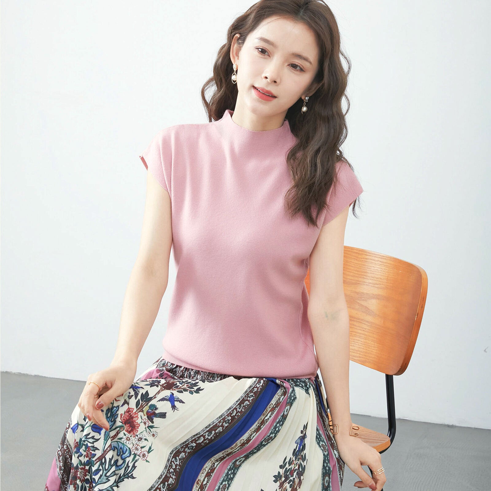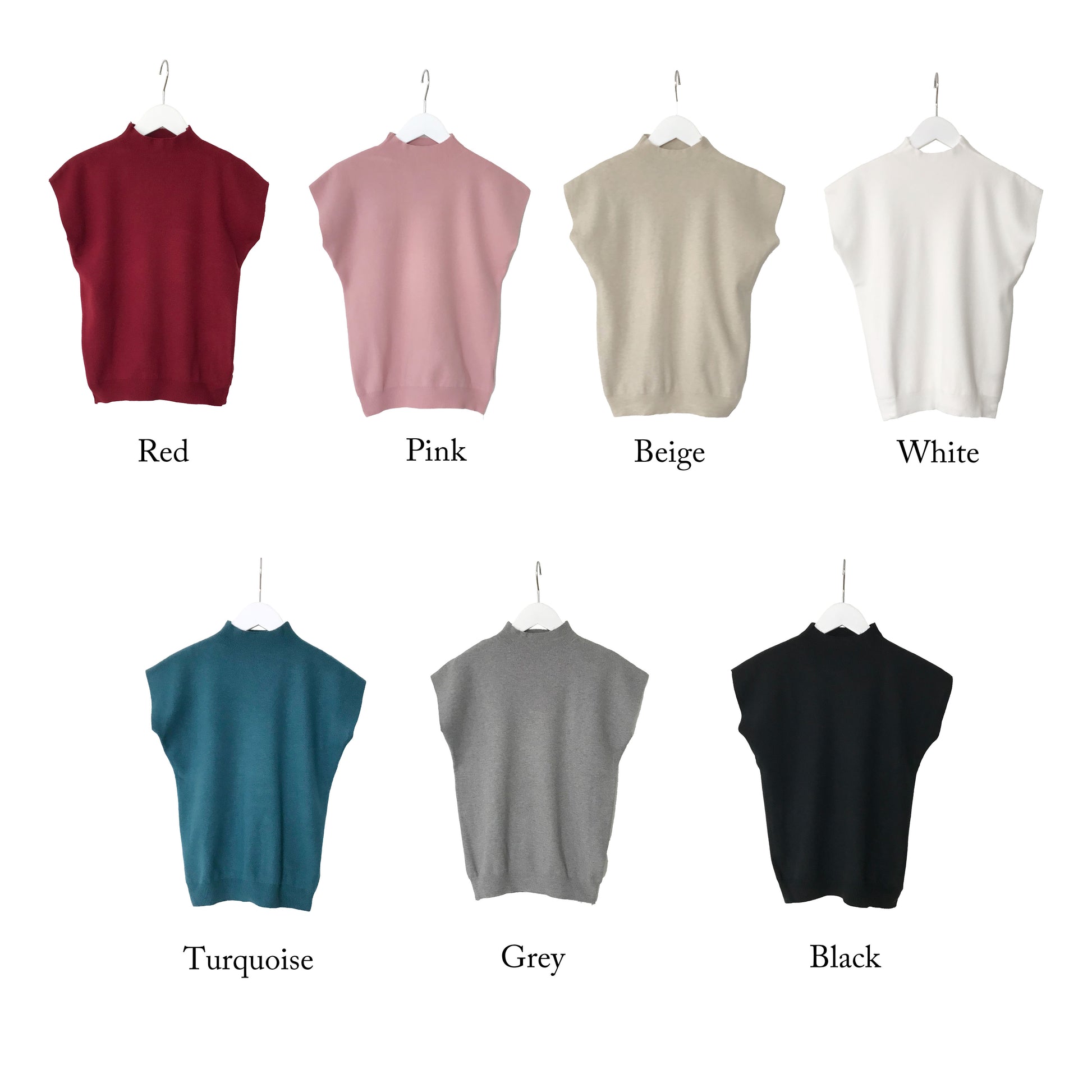フレンチ袖ハイネックニットトップス 7カラー M〜L