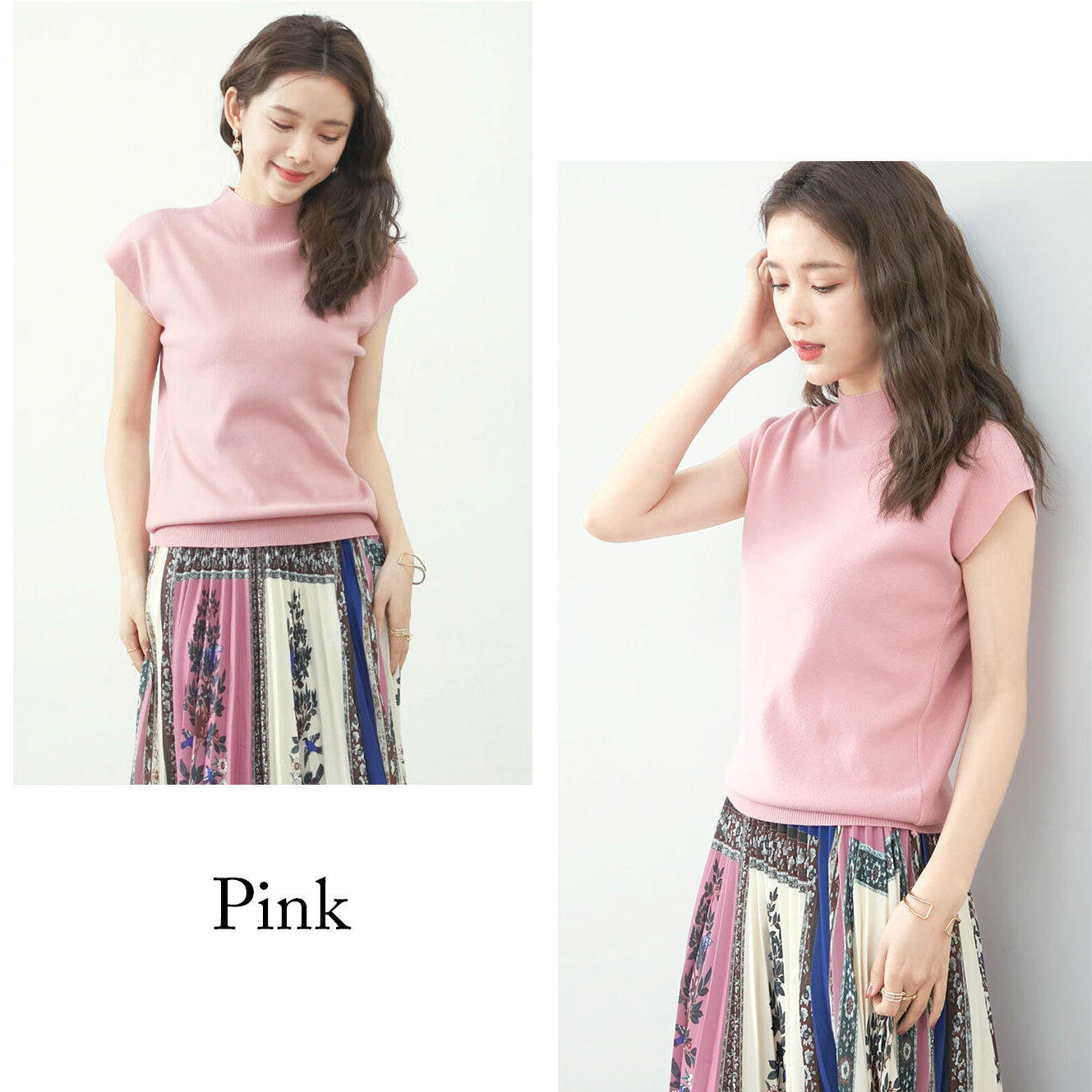 【フレンチ袖ハイネックニットトップス 7カラー M〜L】