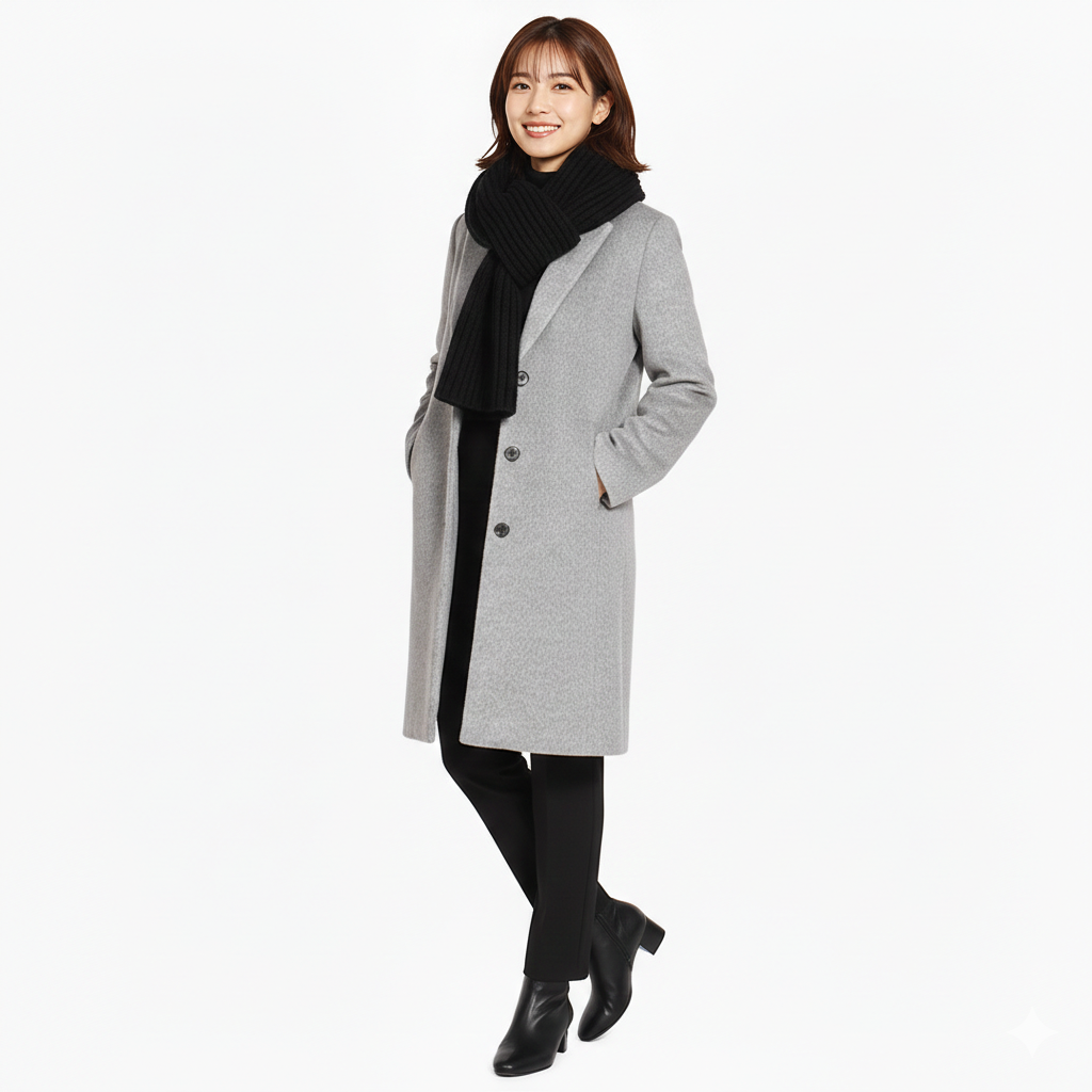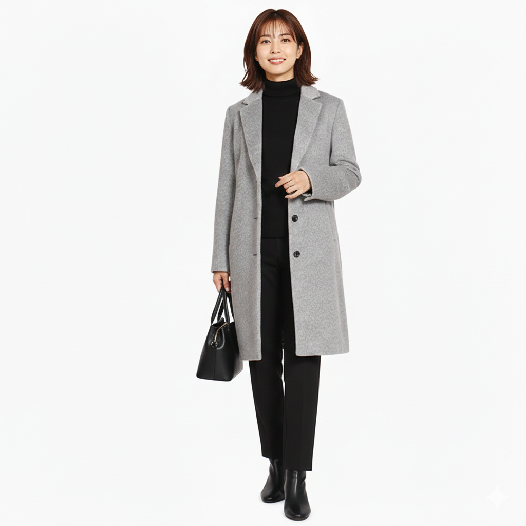 パンツでもスカートでもバランス良く、カッコよく着れるコートです。