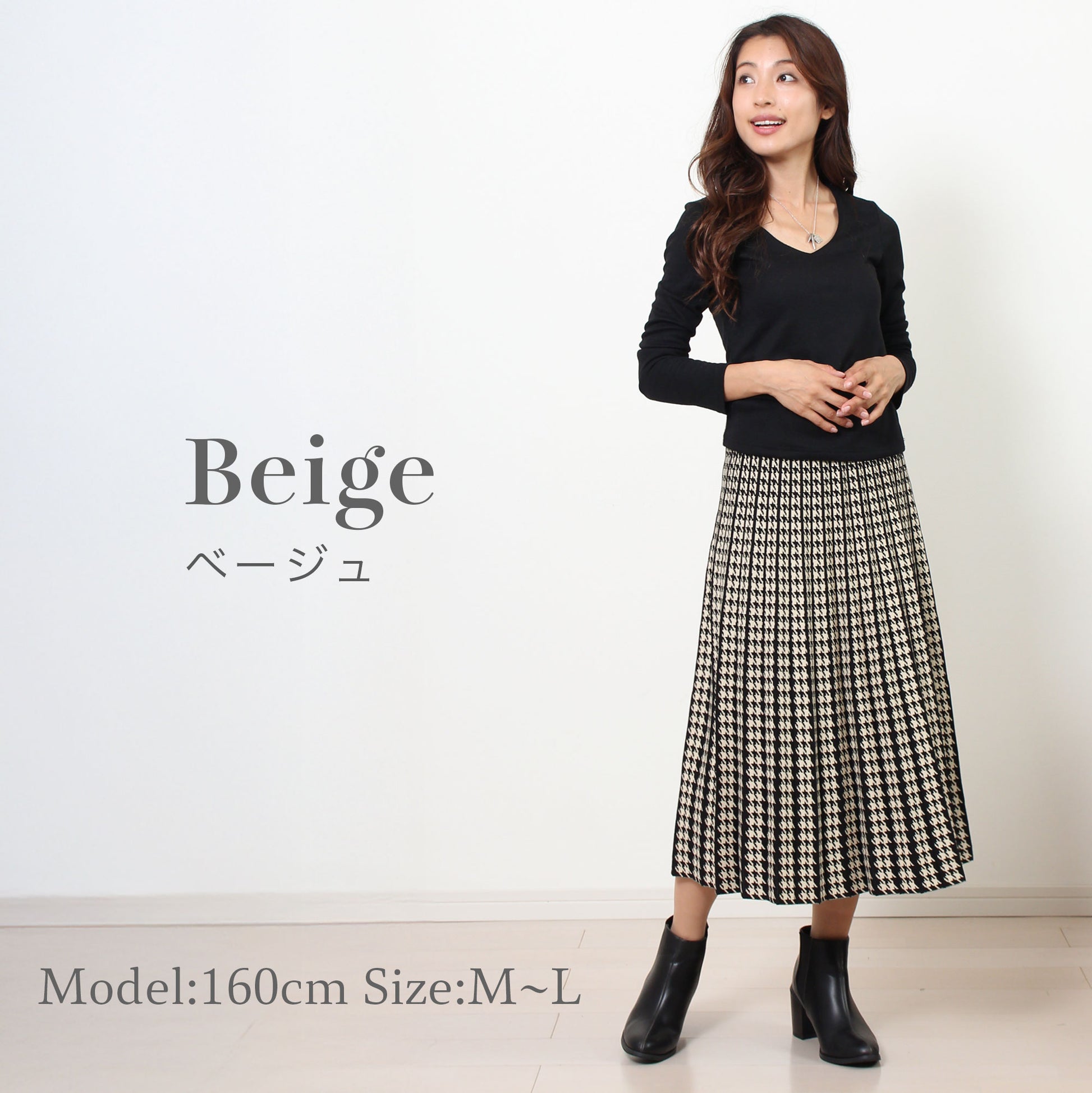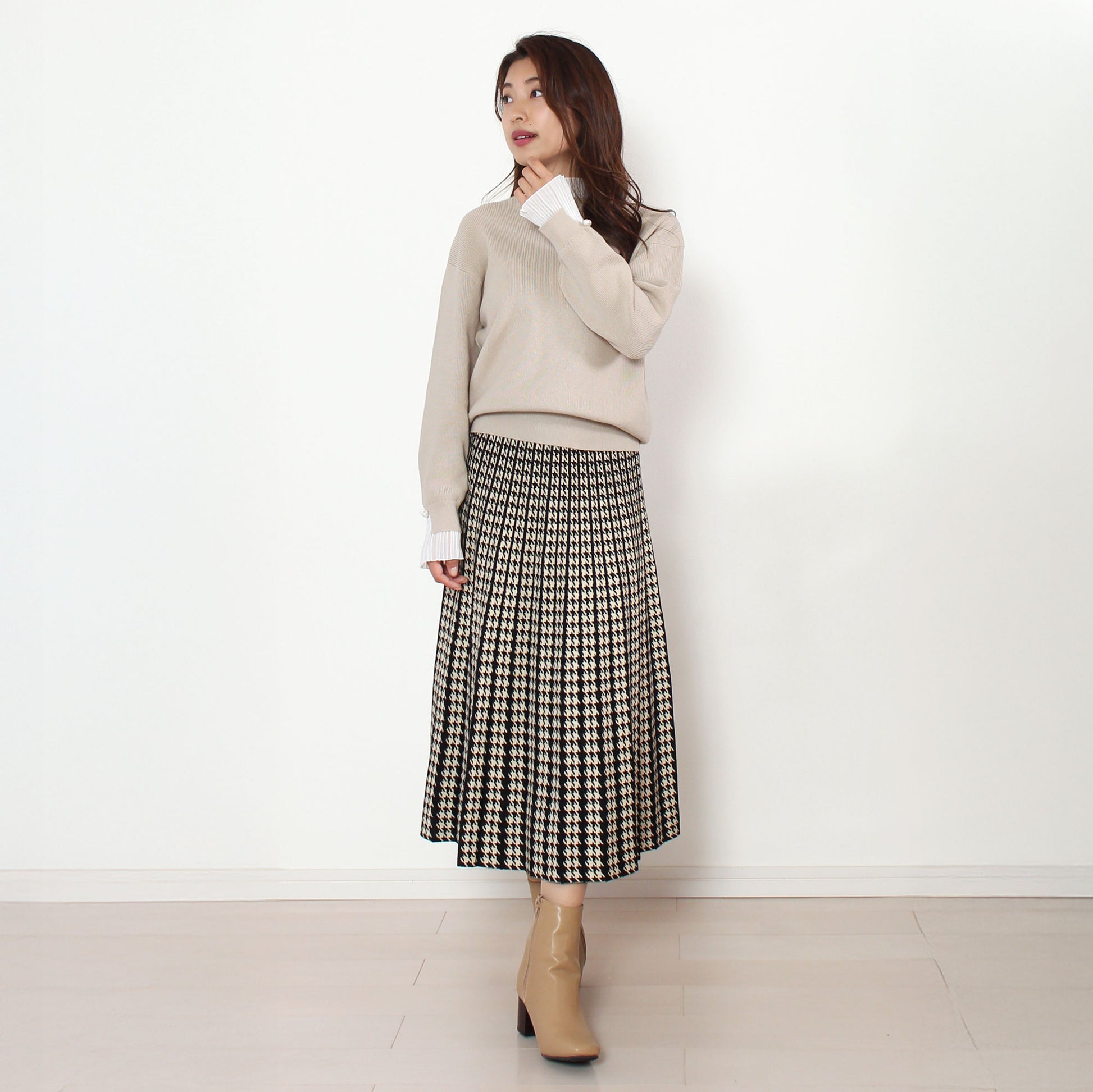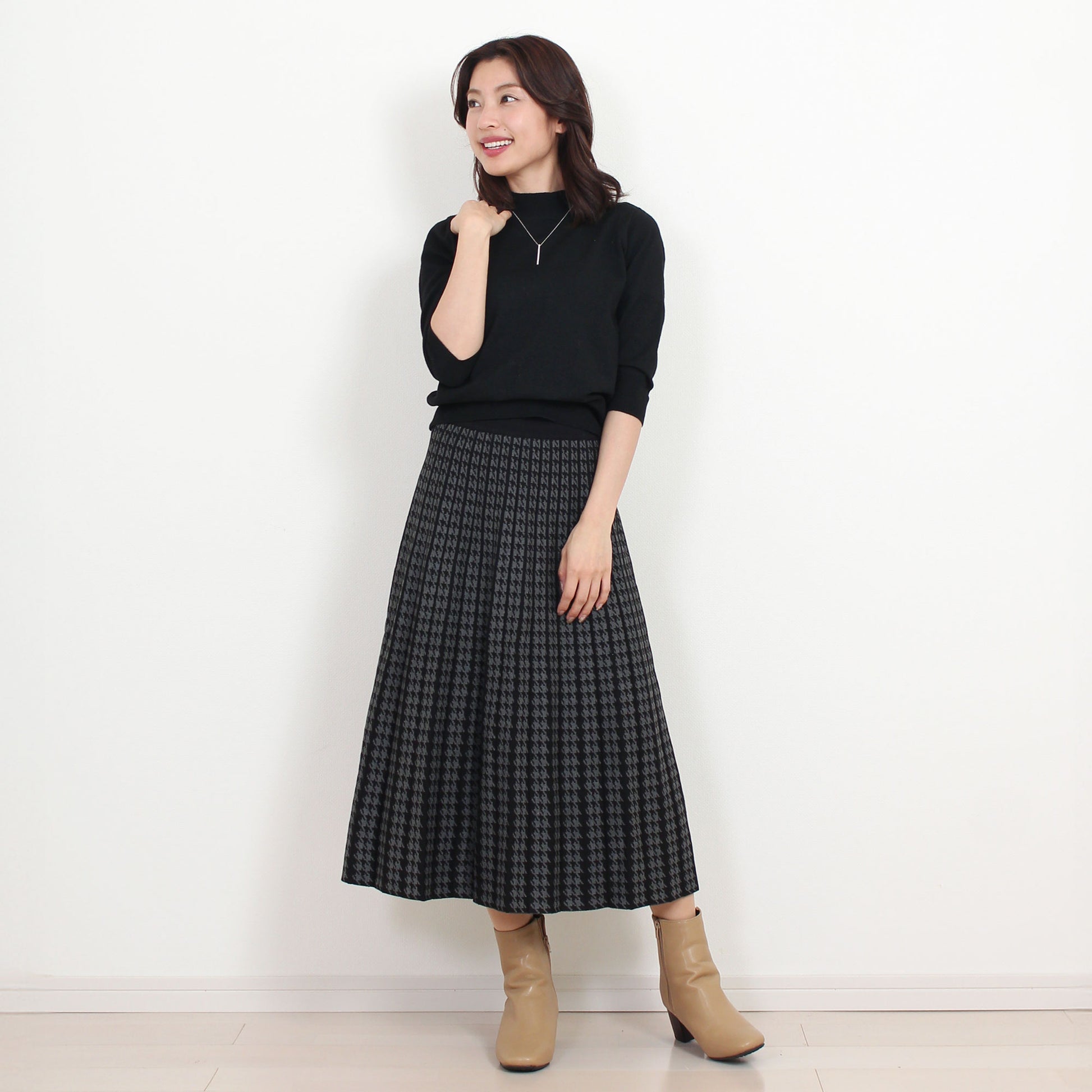 きちんと上品なのにゆったりリラックス。大人女性のためのおしゃれ千鳥格子ニットスカートです。