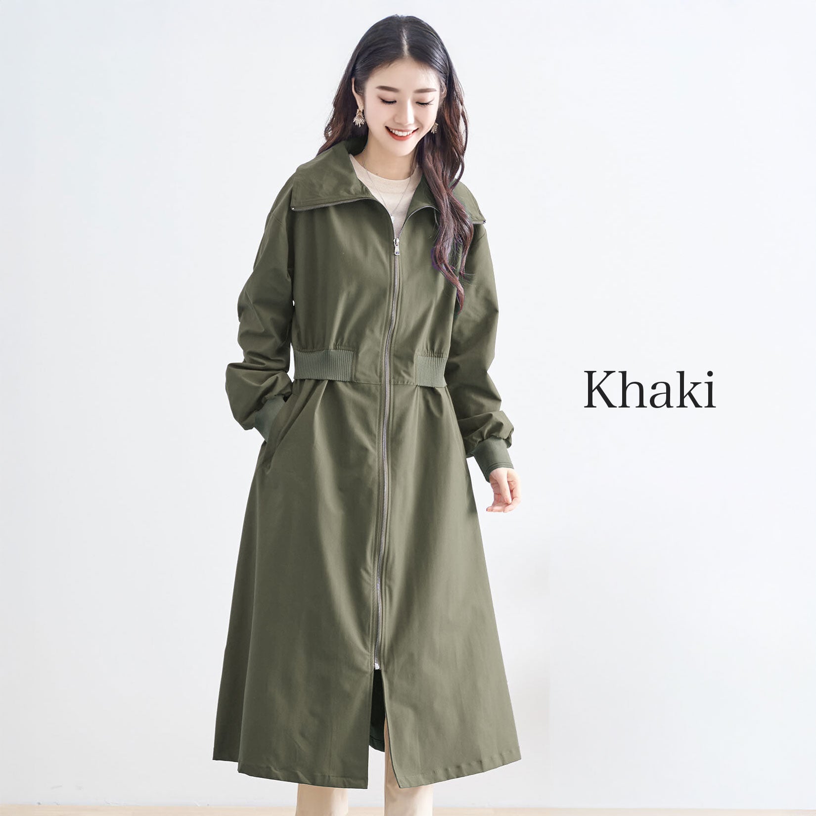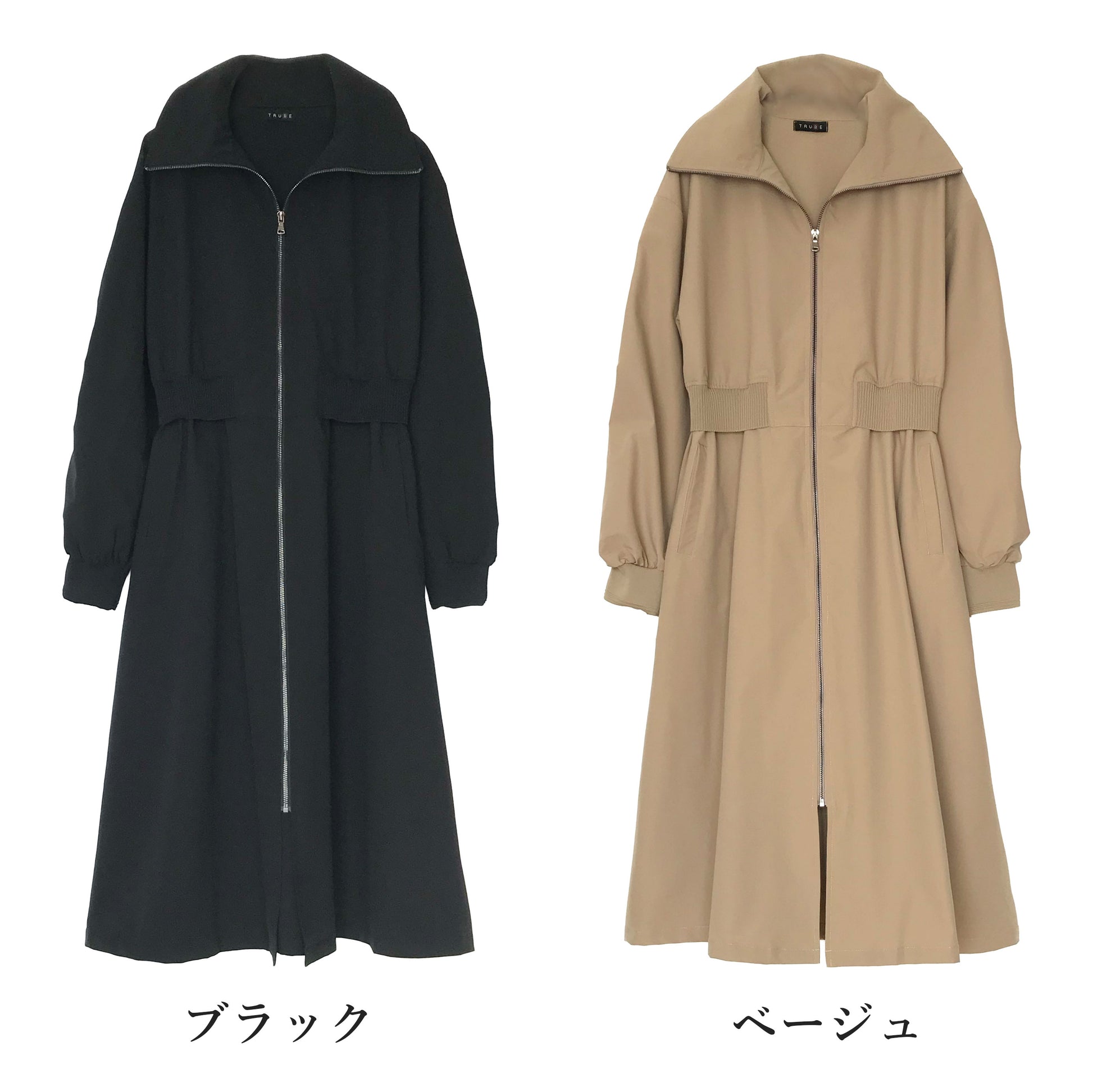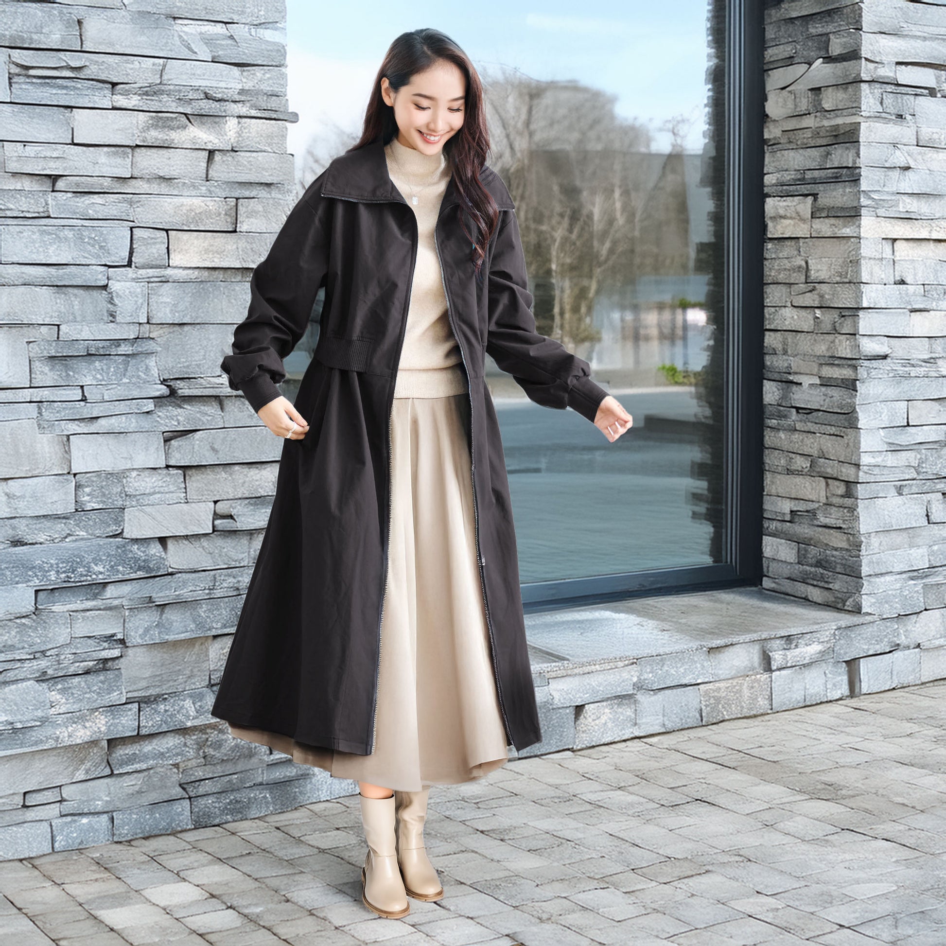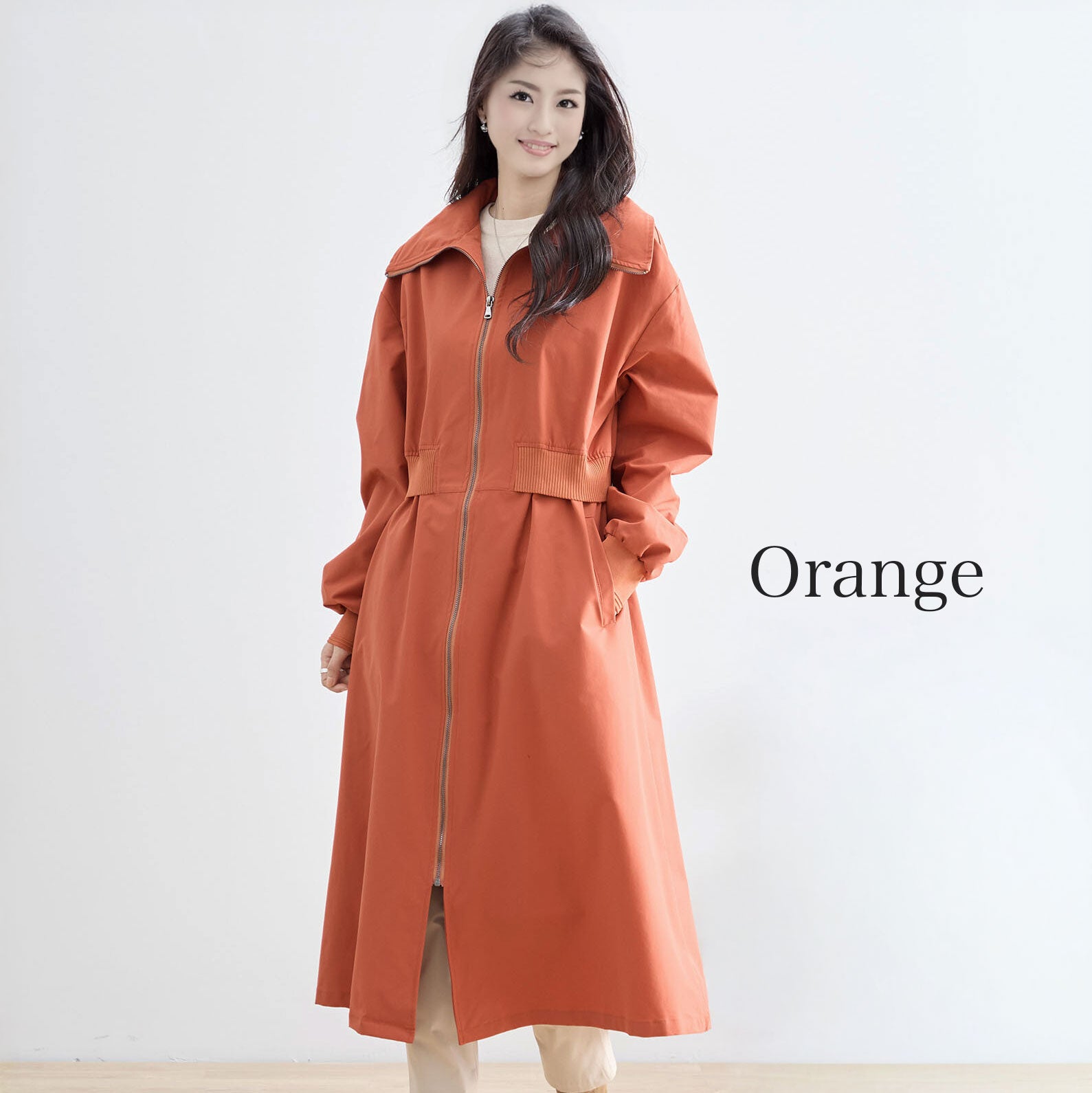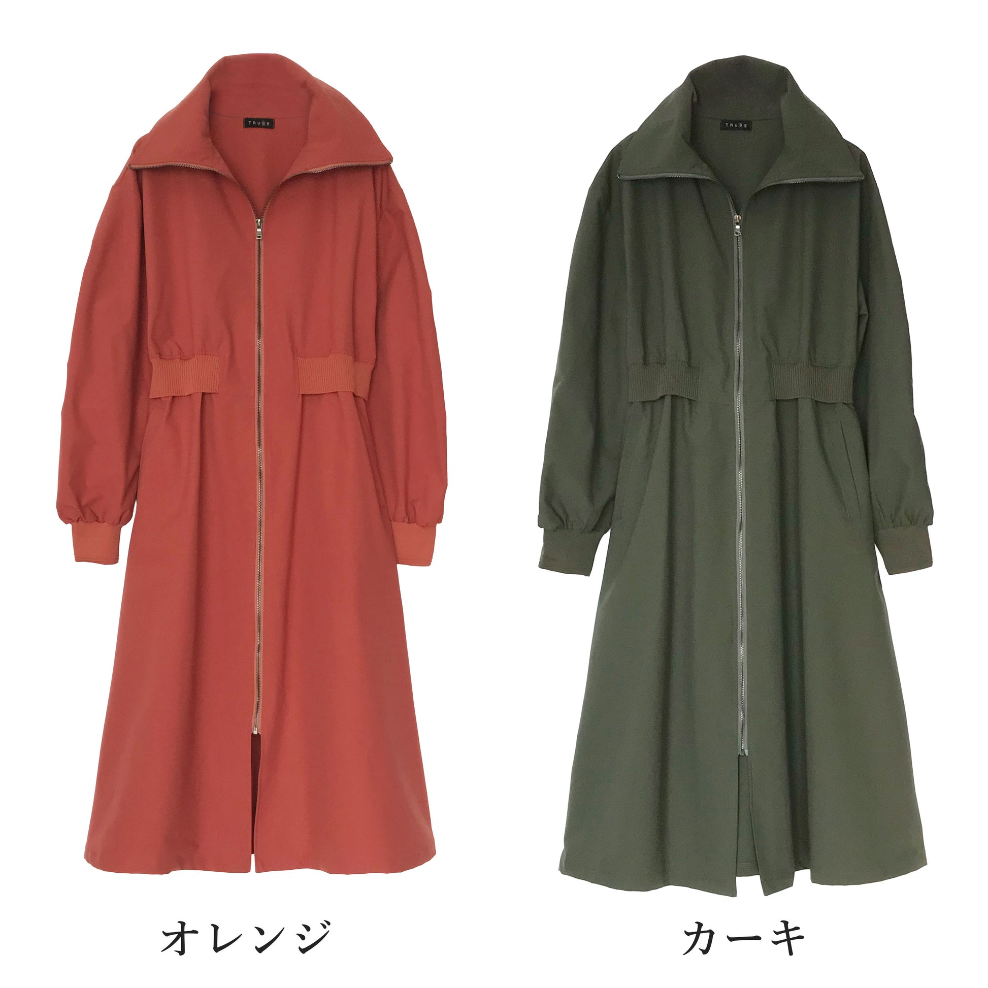 ウエストリブ切替フロントジップライトロングコート M〜L 4カラー