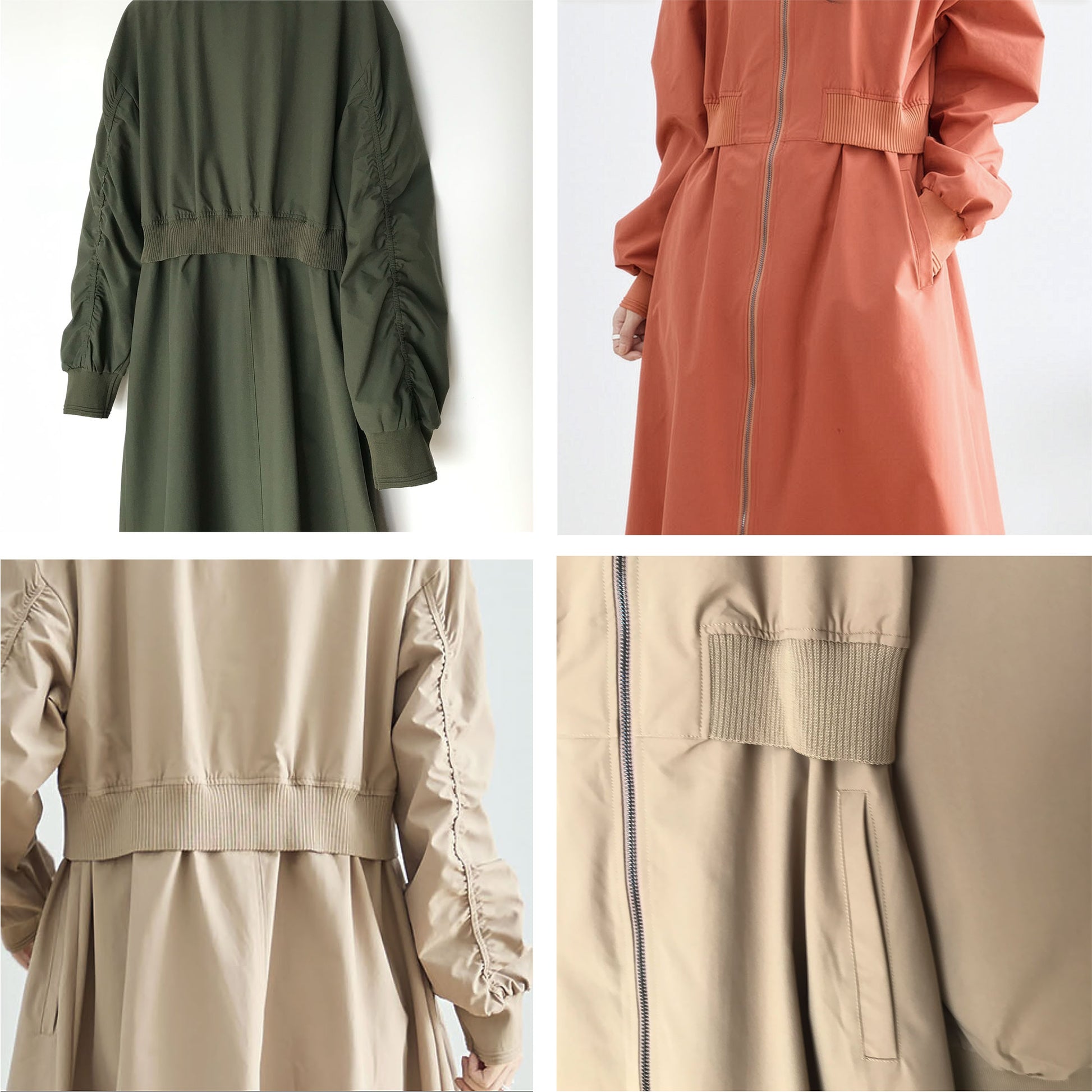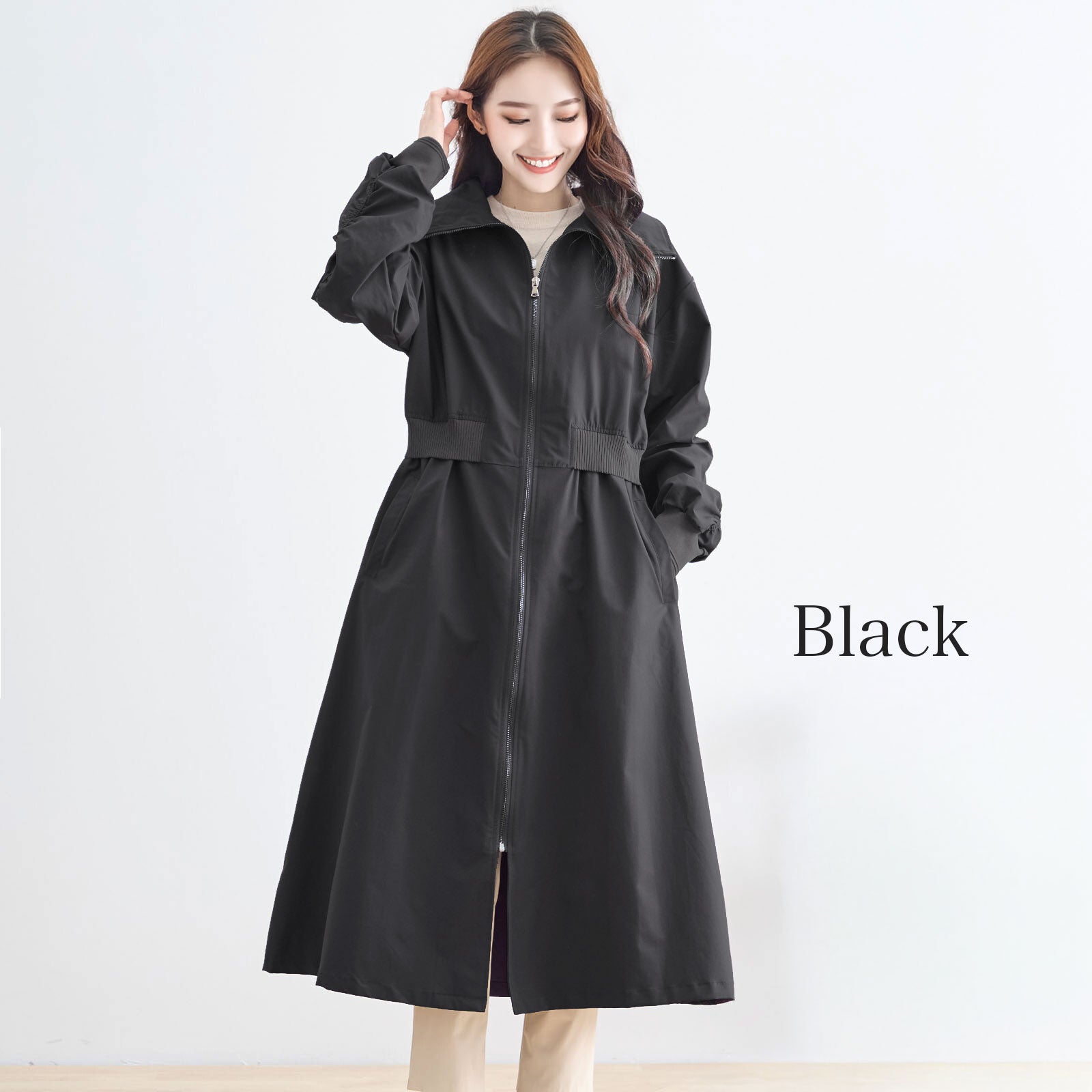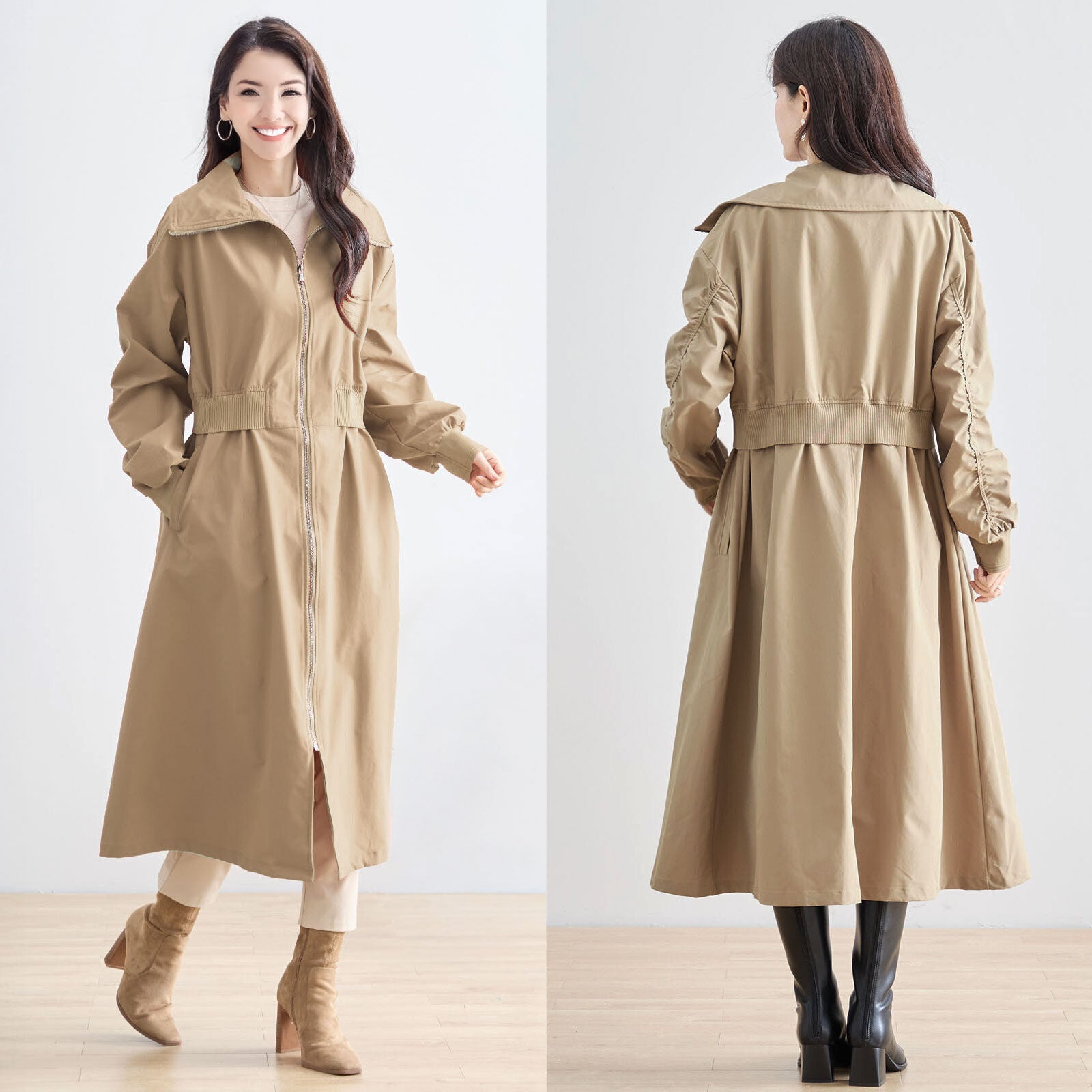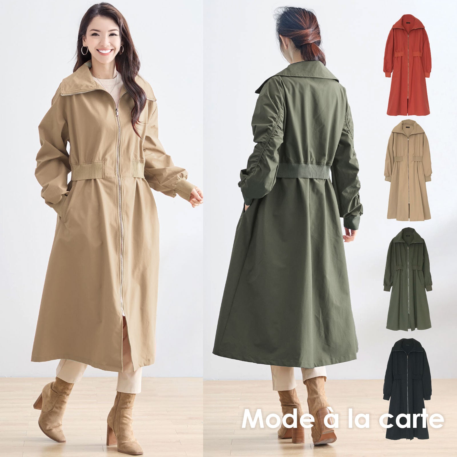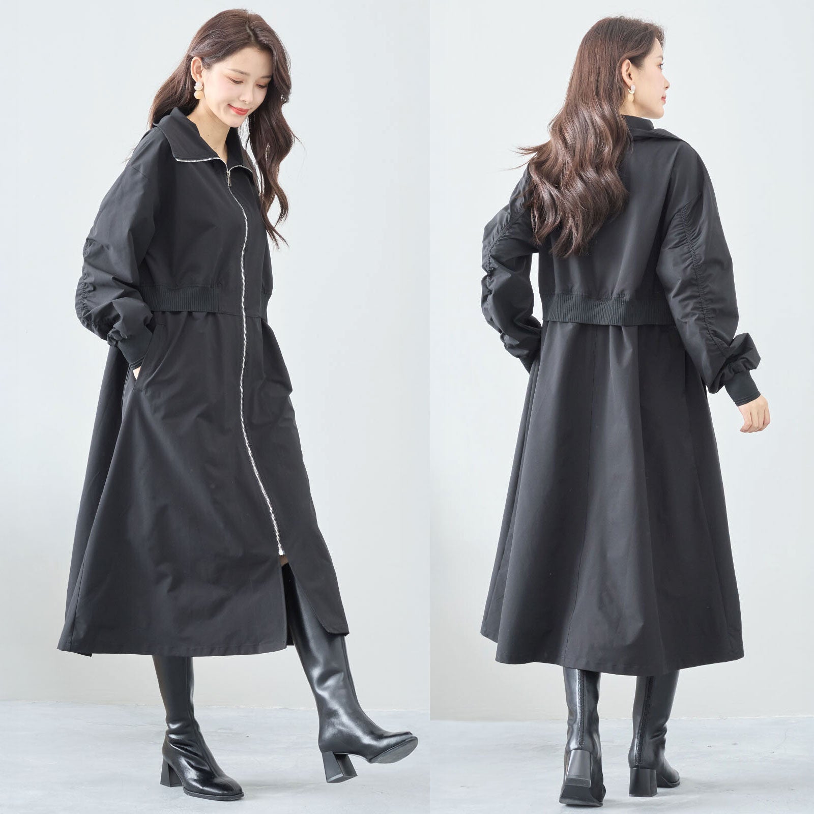 ウエストリブ切替フロントジップライトロングコート M〜L 4カラー