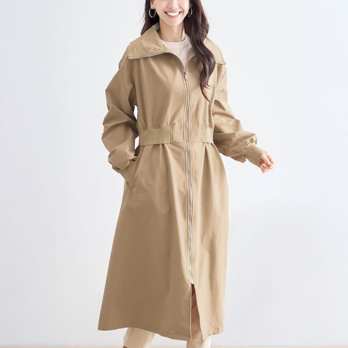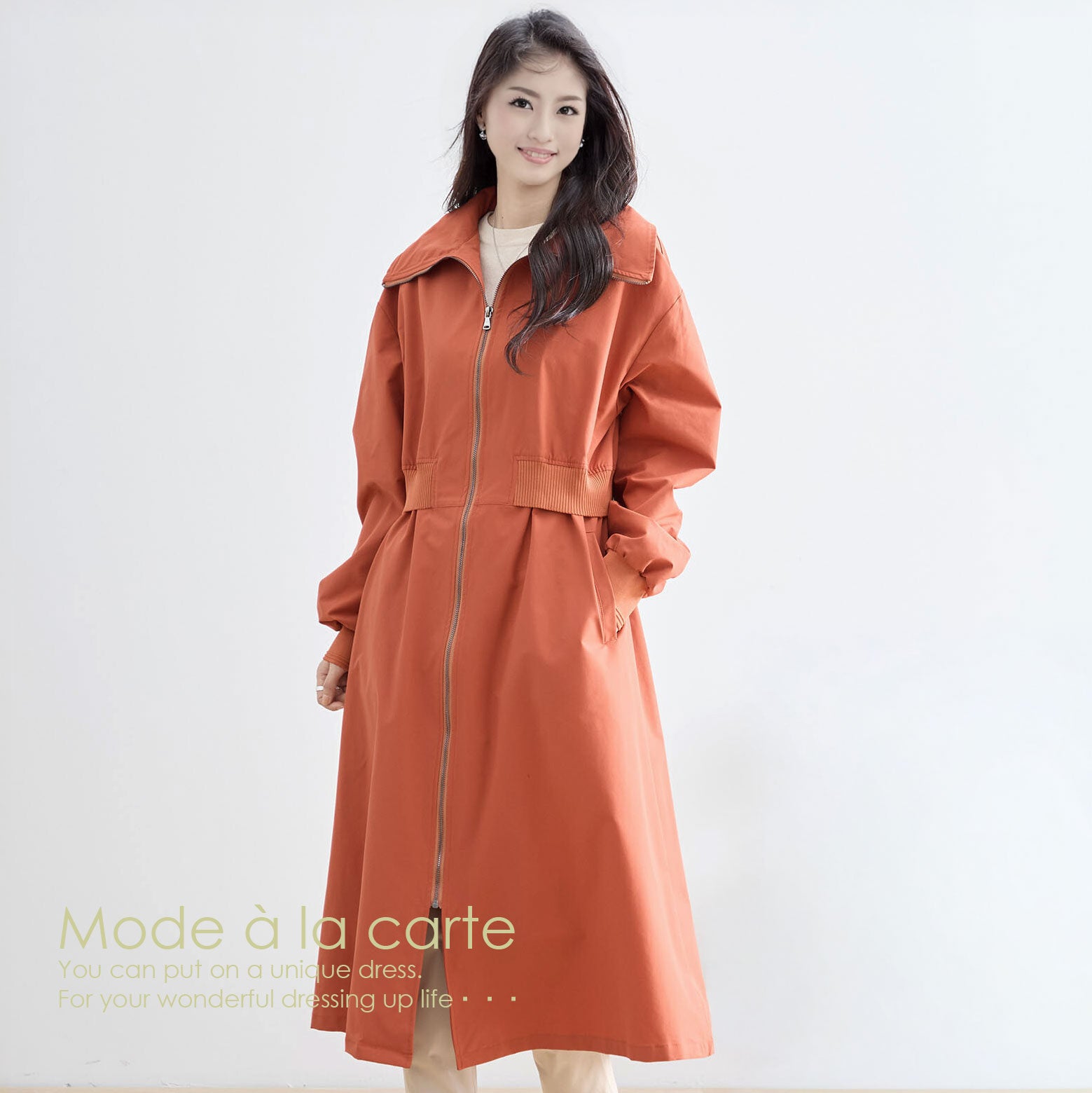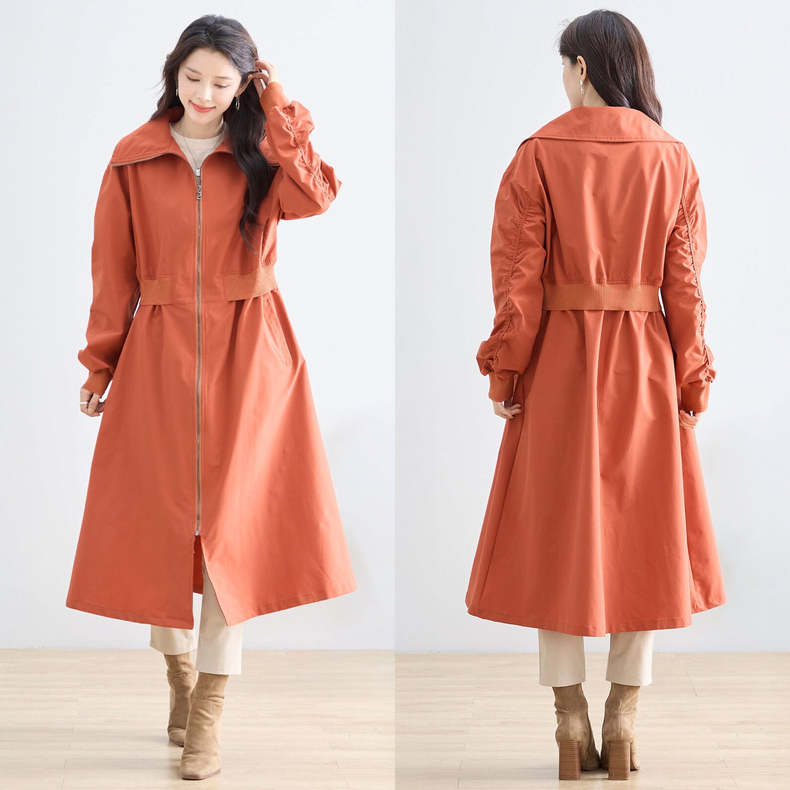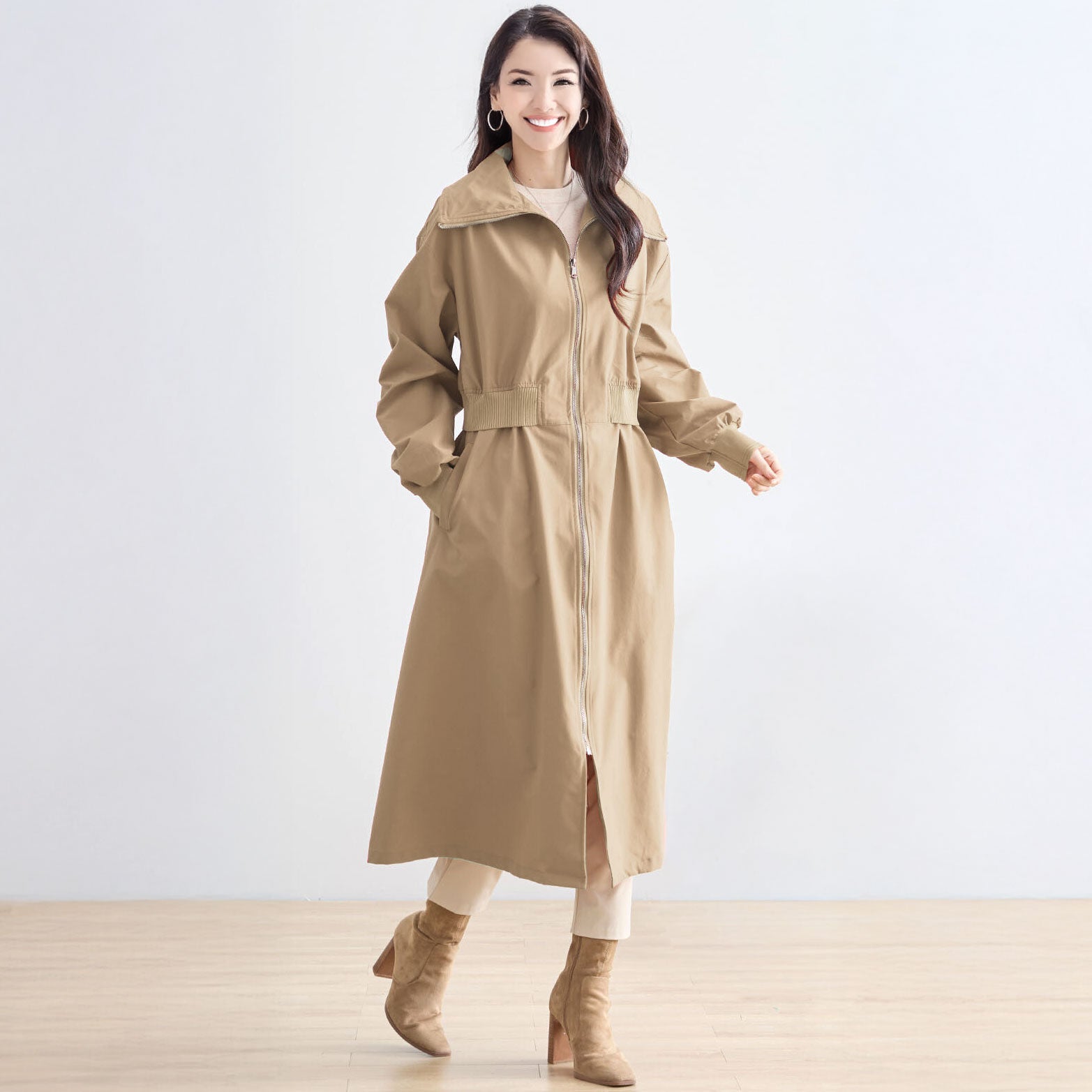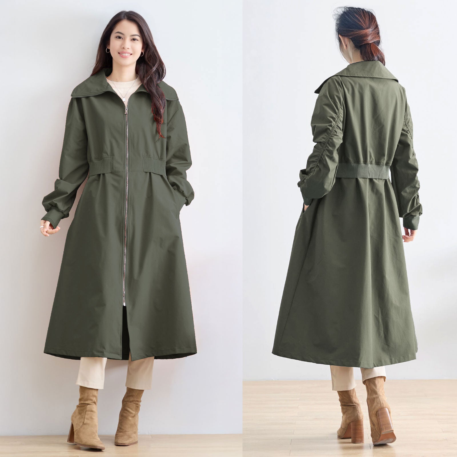 ウエストリブ切替フロントジップライトロングコート M〜L 4カラー