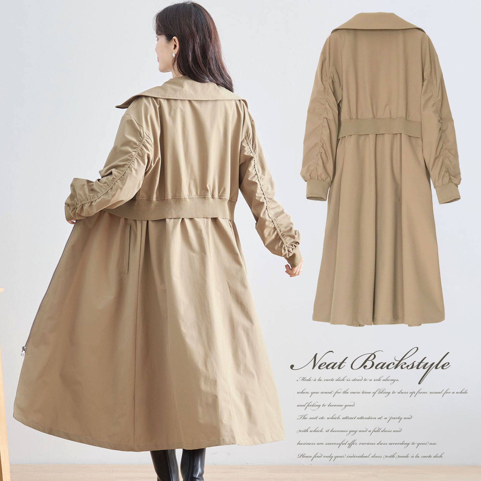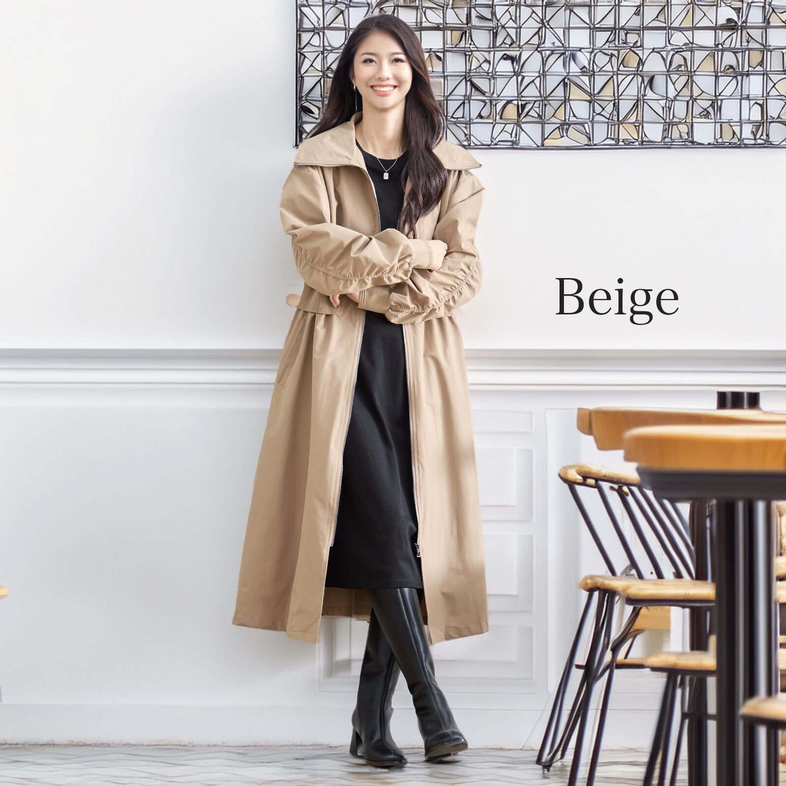 このコートの最大の魅力は、トレンチコートのきれいめなAラインシルエットに、こなれたモッズコートのディテールを掛け合わせたテイストミックスなデザインです。ゆったりとした着心地なのに、ウエストのリブ切り替えが自然なくびれをメイク。気になる部分をさりげなく体型カバーしつつ、確かなスタイルアップを実現してくれます。