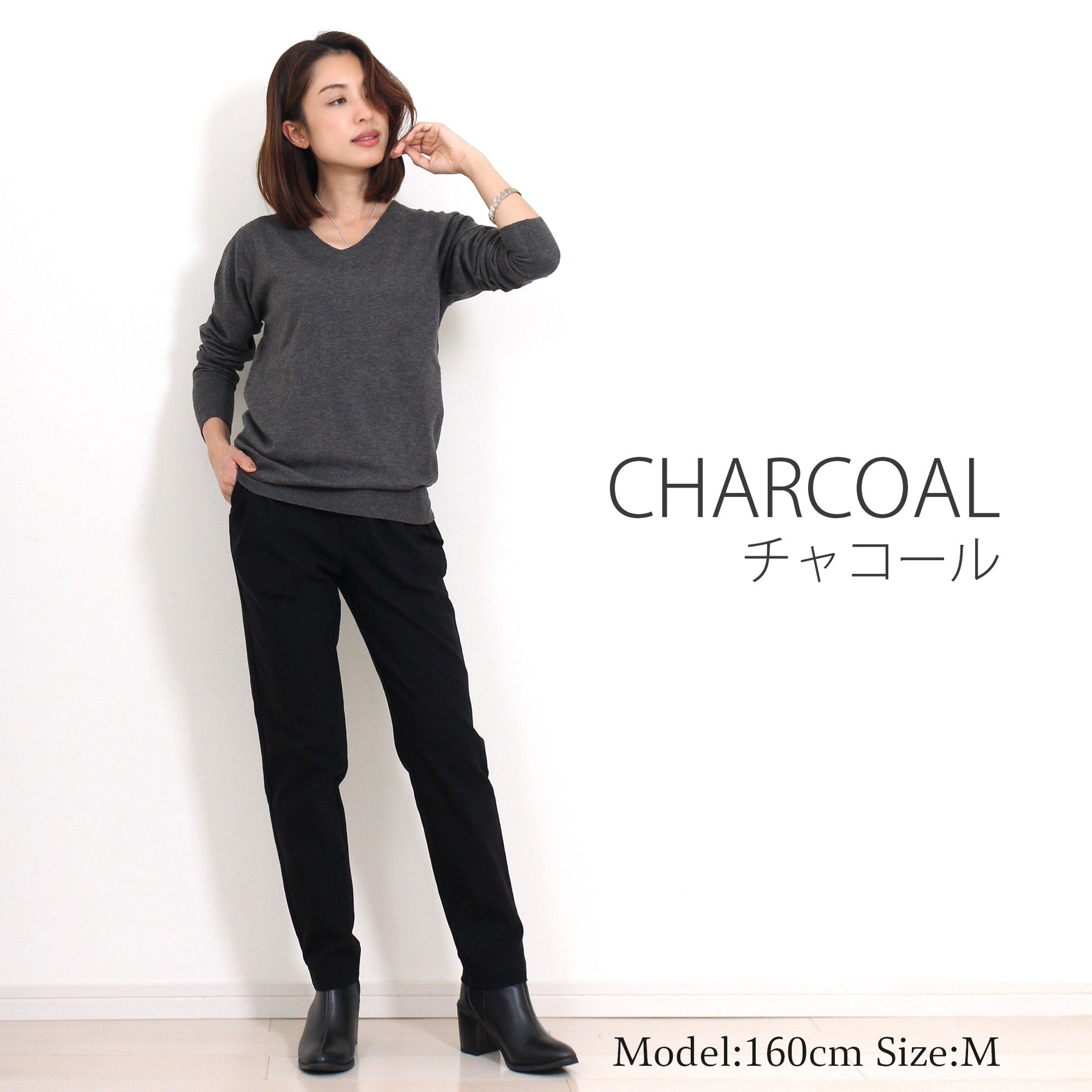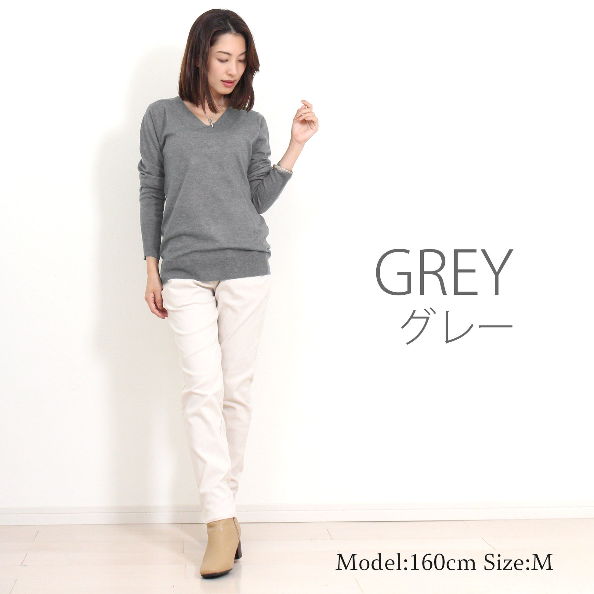特に、緩やかなカットの上品なVネックがえり元を美しく見せ、きれいめにもカジュアルにも使える一枚。