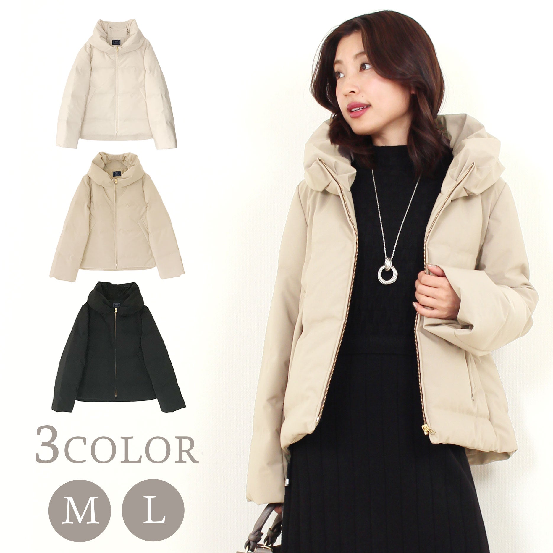 カラーはベーシックな黒、清潔感たっぷりのオフ白(アイボリー)、上品で優しいベージュ。どのカラーも冬の装いを素敵に引き立ててくれます。